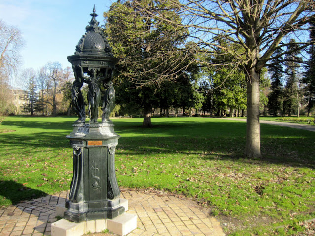 These elegant cast-iron public drinking fountains, designed in 1872 by the French sculptor Charles-Auguste Lebourg, were originally commissioned by an Englishman in Paris, the wealthy art collector and philanthropist Richard Wallace (1818-1890 and buried at Père-Lachaise cemetery in Paris). Wallace’s fortune had been inherited from his father and, as his adopted hometown suffered during the 1870 Franco-Prussian War, Wallace put his riches to altruistic use, first funding two field hospitals and then donating to the city 50 of these drinking fountains, aimed at offering sources of free drinking water to the homeless and needy.