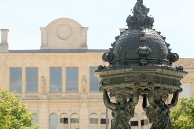 A little further north, this fountain, painted a paler shade of green than its counterparts, can be seen on the scenic Place Mitchell, named after the Irishman who founded the city's first glassworks, creating the bottles that enabled Bordeaux to launch its international wine export trade.